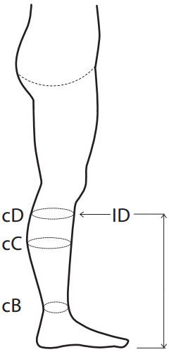 Измерьте и выберите длину окружности середины голени - наиболее широкая часть голени.